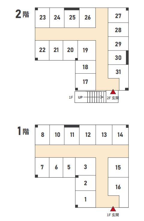 | No. | 広さ | 月額利用料 | 階 | 間口(m) | 奥行(m) | 高さ(m) | 備考 | 空き状況 |