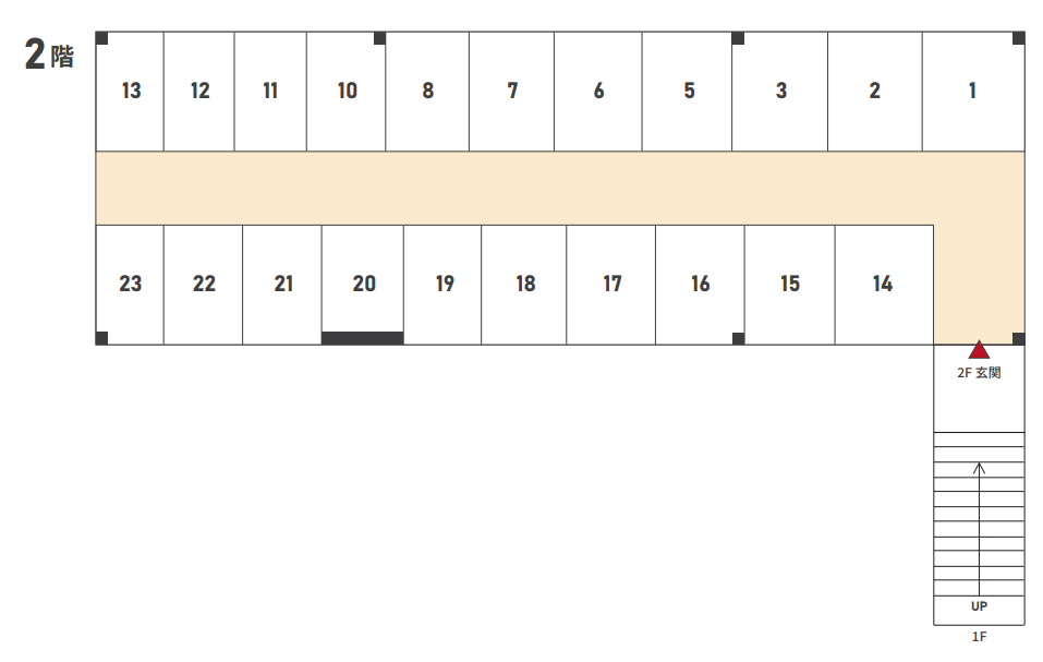 | No. | 広さ | 月額利用料 | 階 | 間口(m) | 奥行(m) | 高さ(m) | 備考 | 空き状況 |