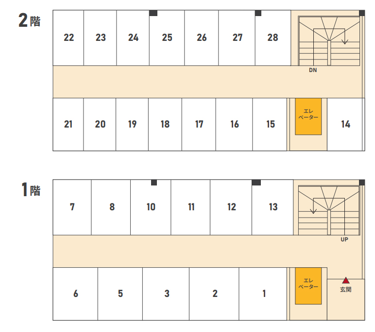 | No. | 広さ | 月額利用料 | 階 | 間口(m) | 奥行(m) | 高さ(m) | 備考 | 空き状況 |