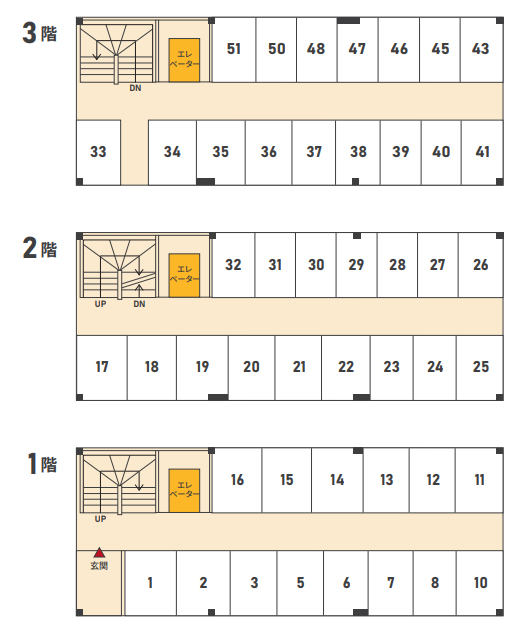 | No. | 広さ | 月額利用料 | 階 | 間口(m) | 奥行(m) | 高さ(m) | 備考 | 空き状況 |